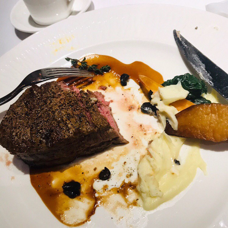 #东面 #二环 #西餐 位于华润万象城3层。推荐的当然是招牌台塑牛排全熟,牛排取自一头牛的第六和第八对肋骨,烹制香料味很浓郁,用高温烘烤一个半小时但是吃的好像卤牛肉啊hhhh肉质是很能打的;松露菲力牛排,推荐五分熟。一月份是刚好吃松露的季节,搭配着先煎后烤的牛排一起,咸香浓郁,多重口感层次分明。记得切一块之后沾一点盘边的海盐,可以让服务员小姐姐多加一点黑胡椒粉!一定要加粉,洒在牛排上就行了,加酱的话感觉会破坏整体美感。与牛排搭配的松露土豆泥一点也不腻,胡萝卜就有点偏硬了,不过还是不错的。
