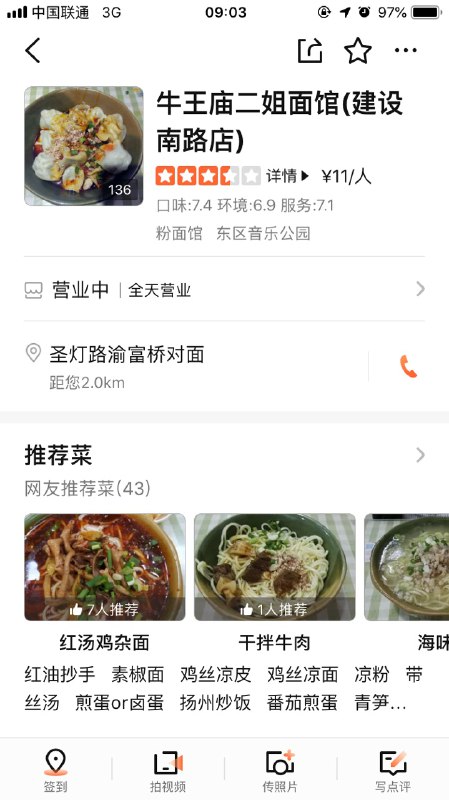 位于东郊记忆东门北侧圣灯路,近公交180路圣灯路南站。东郊记忆附近的另一家好吃且不坑的苍蝇馆子。干拌牛肉面很入味,据说干拌米线味道也可以,烫菜3元一份但是量很足。来东郊耍的老板们可以考虑下。