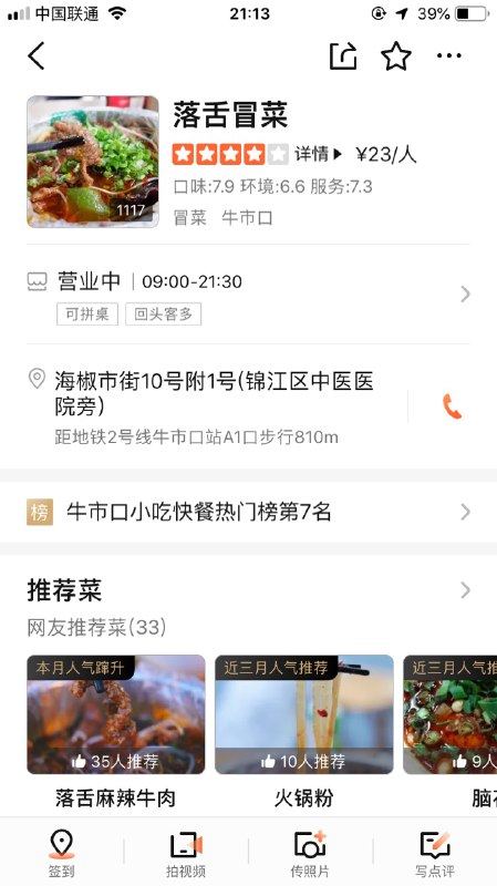 #东面 #海椒市 #冒菜 海椒市街上的临街店铺,近43路海椒市公交站。可以说是家极度追求无辣不欢的冒菜店。推荐麻辣牛肉+素菜,牛肉比较大片,吃起来很过瘾。辣度可选清汤、微微辣、微辣、中辣、特辣。个人经过微辣洗礼之后,再无挑战中辣、特辣的念头,请各胖友自行斟酌。头一次来的胖友们,建议微微辣起步。小菜推荐脑花,是他家特色菜品。